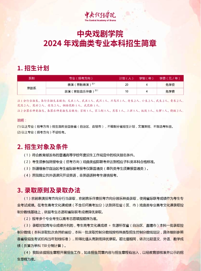 中央戲劇學(xué)院2024年戲曲類專業(yè)本科招生簡(jiǎn)章
